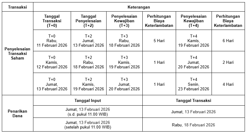 Terkait dengan libur bursa tersebut, nasabah diharapkan dapat menyesuaikan penyelesaian transaksi jual dan beli efek dengan rincian sebagai berikut: